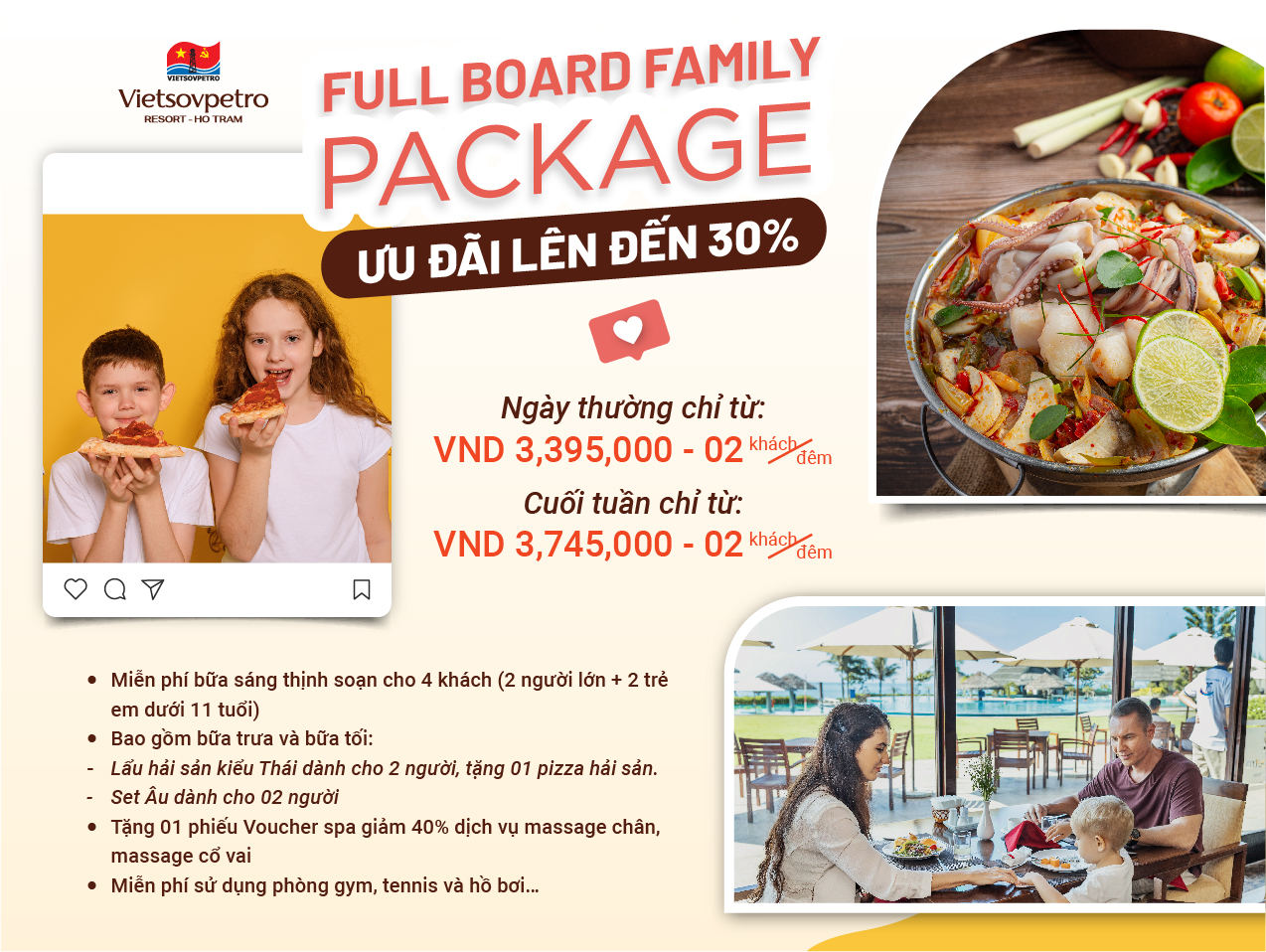 · Miễn phí bữa sáng thịnh soạn cho 4 khách (2 người lớn + 2 trẻ em dưới 11 tuổi)